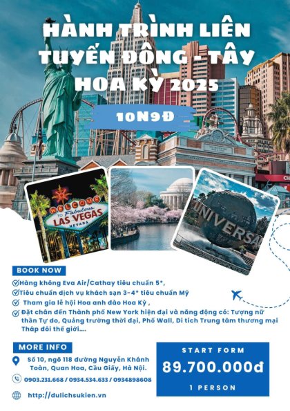 TOUR DU LỊCH MỸ 2025 - KHÁM PHÁ LIÊN TUYẾN ĐÔNG TÂY HOA KỲ