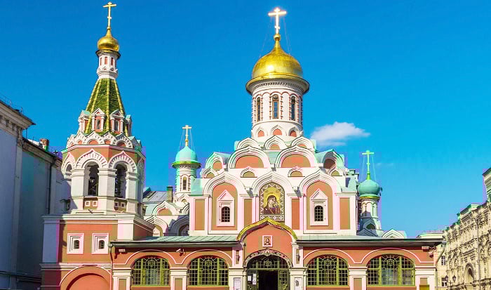 - Nhà thờ thánh Basil (bên ngoài) – đẹp rực rỡ như lâu đài cổ tích. Đây là một trong 7 kỳ quan hấp dẫn du khách nhất của nước Nga. Theo truyền thuyết, Sa Hoàng Ivan đã cho chọc mù mắt kiến trúc sư Postnik Yakovlev để ông không thể tạo thêm ra những công trình thứ 2 có thể “so sánh” với nhà thờ thánh Basil.